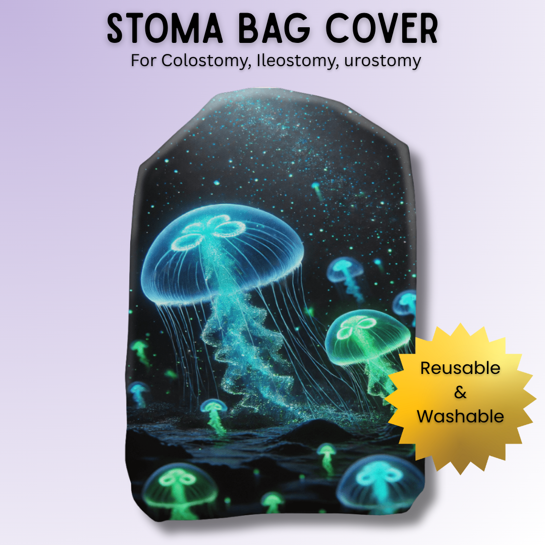 Bring the glow of the ocean to your stoma care with the Bioluminescent Jellyfish Stoma Bag Cover. Combining style, functionality, and a touch of magic, it’s the perfect choice for those who love the beauty of the underwater world. Shop now and light up your routine today!