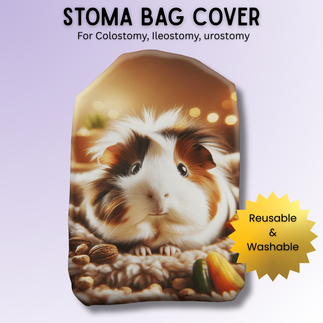 At Stoma Styles, we believe in making stoma care fun, stylish, and uniquely yours. The “Greedy Gavin the Guinea Pig” stoma bag cover combines functionality with delightful charm, helping you feel confident and happy every day.