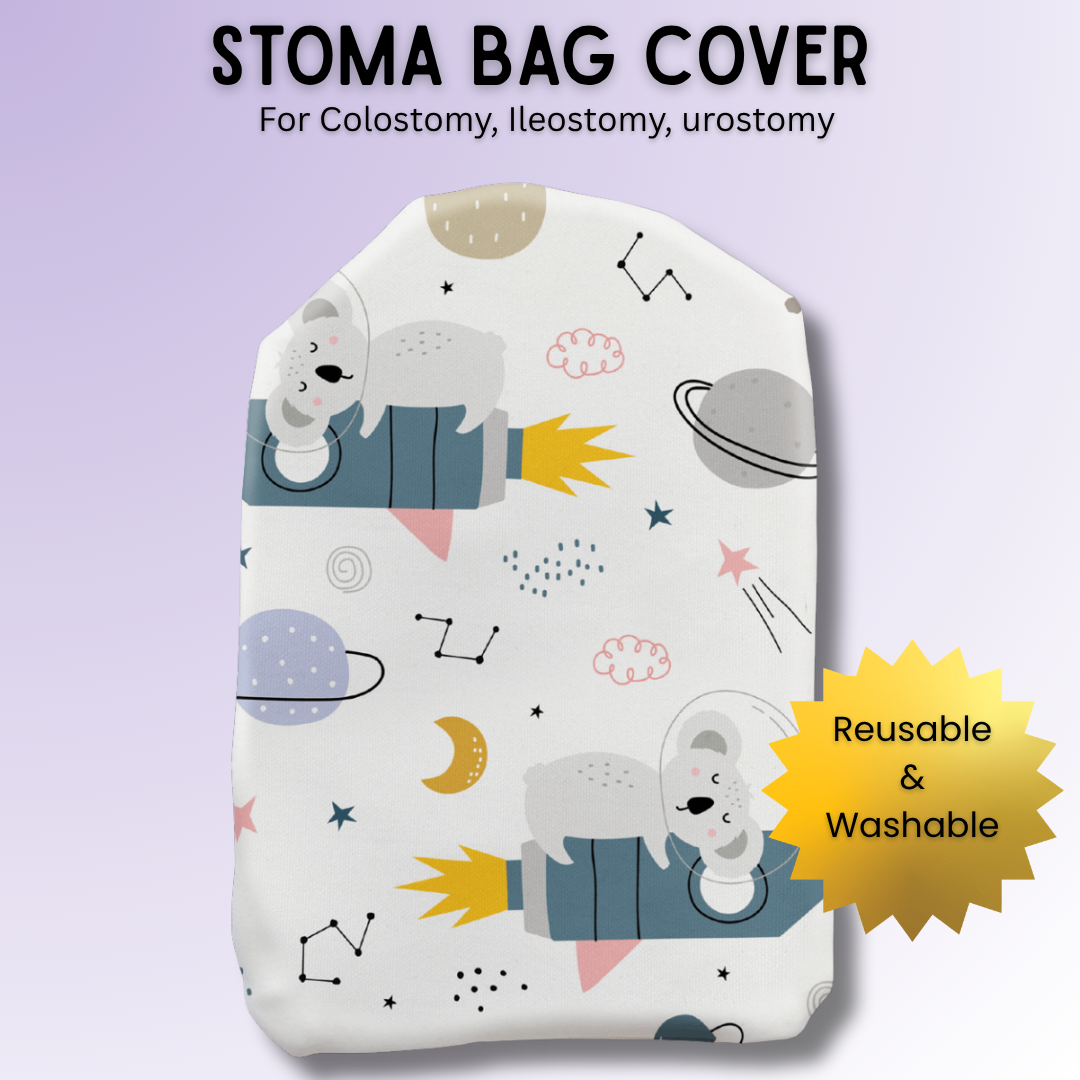 • Charming Koala Design: A sleeping koala amidst a cosmic backdrop adds a playful and serene touch to your stoma care.