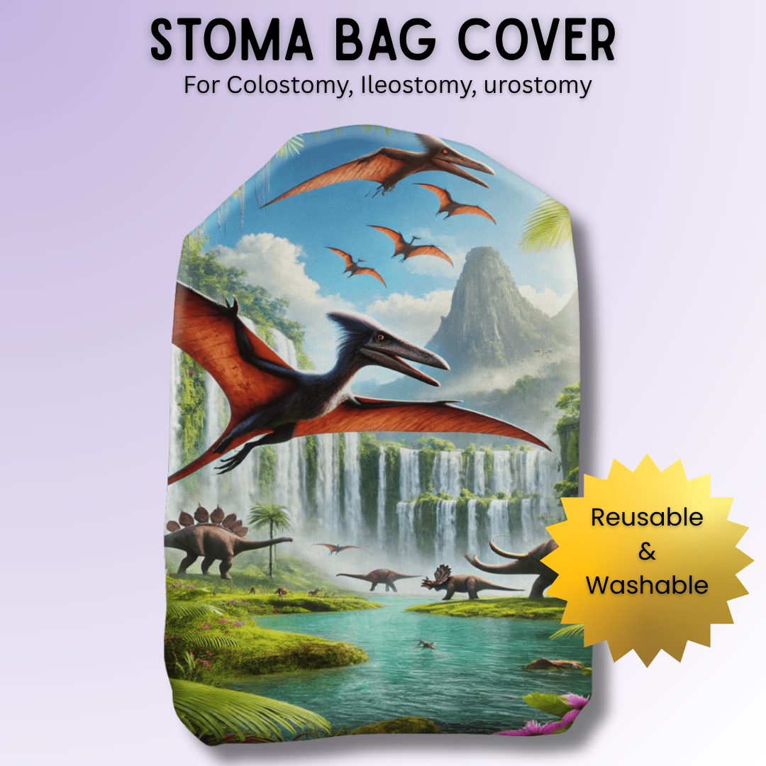 At Stoma Styles, we believe stoma care can be as adventurous and inspiring as the Pterodactyl Paradise design. The Pterodactyl Paradise Stoma Bag Cover combines functionality with a prehistoric twist, helping you feel confident and bold every day.
