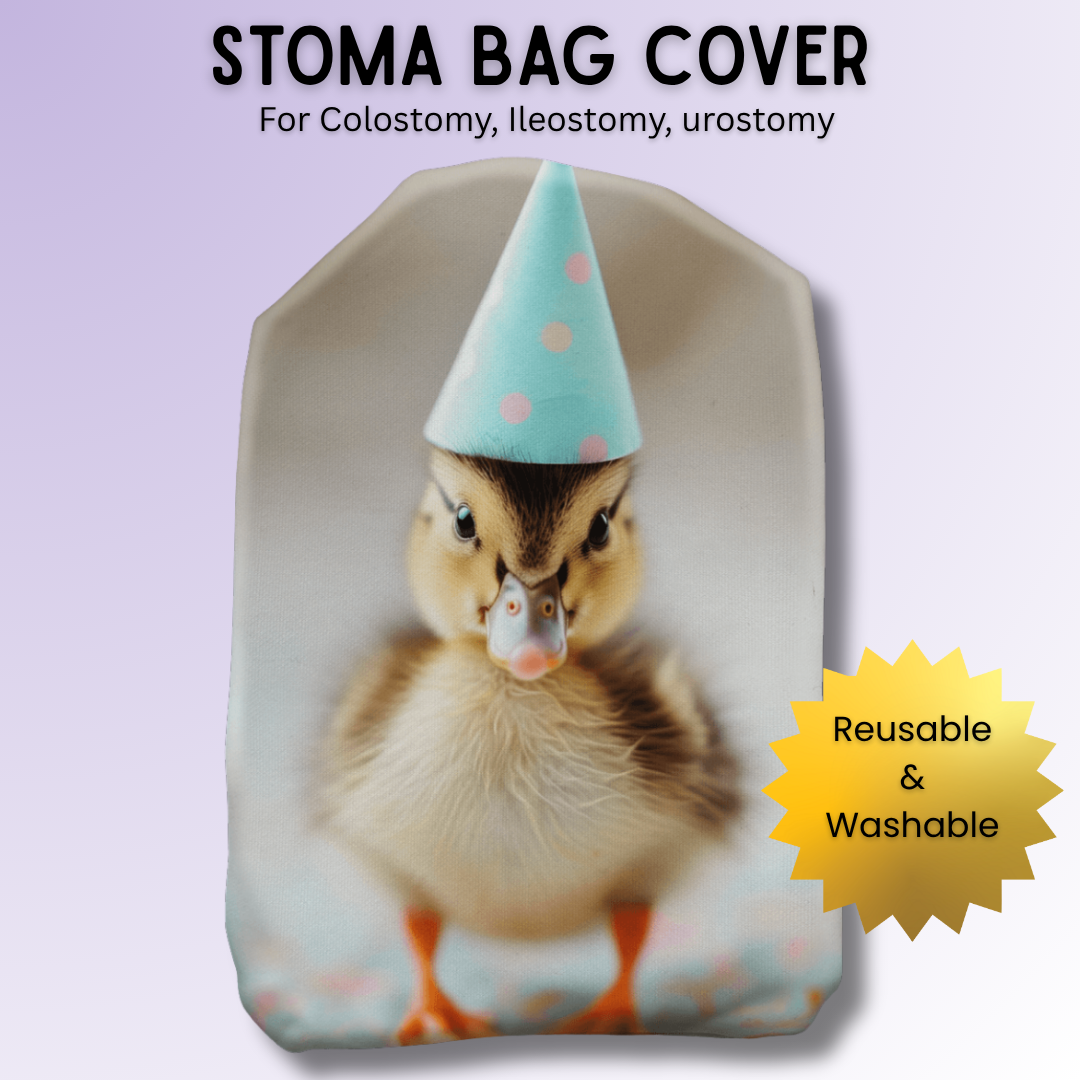 At Stoma Styles, we believe stoma care can be functional, stylish, and full of personality. The “Puddles the Party Duck” cover combines practicality with a playful design that turns everyday moments into celebrations.
