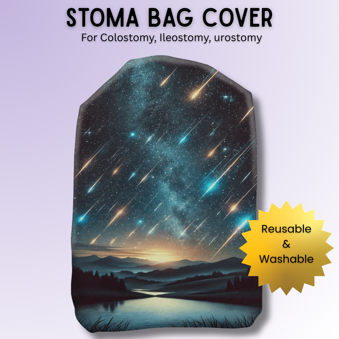 Shop now at www.stomastyles.com and let the Shooting Stars Stoma Bag Cover bring the magic of the universe to your journey! 🌌