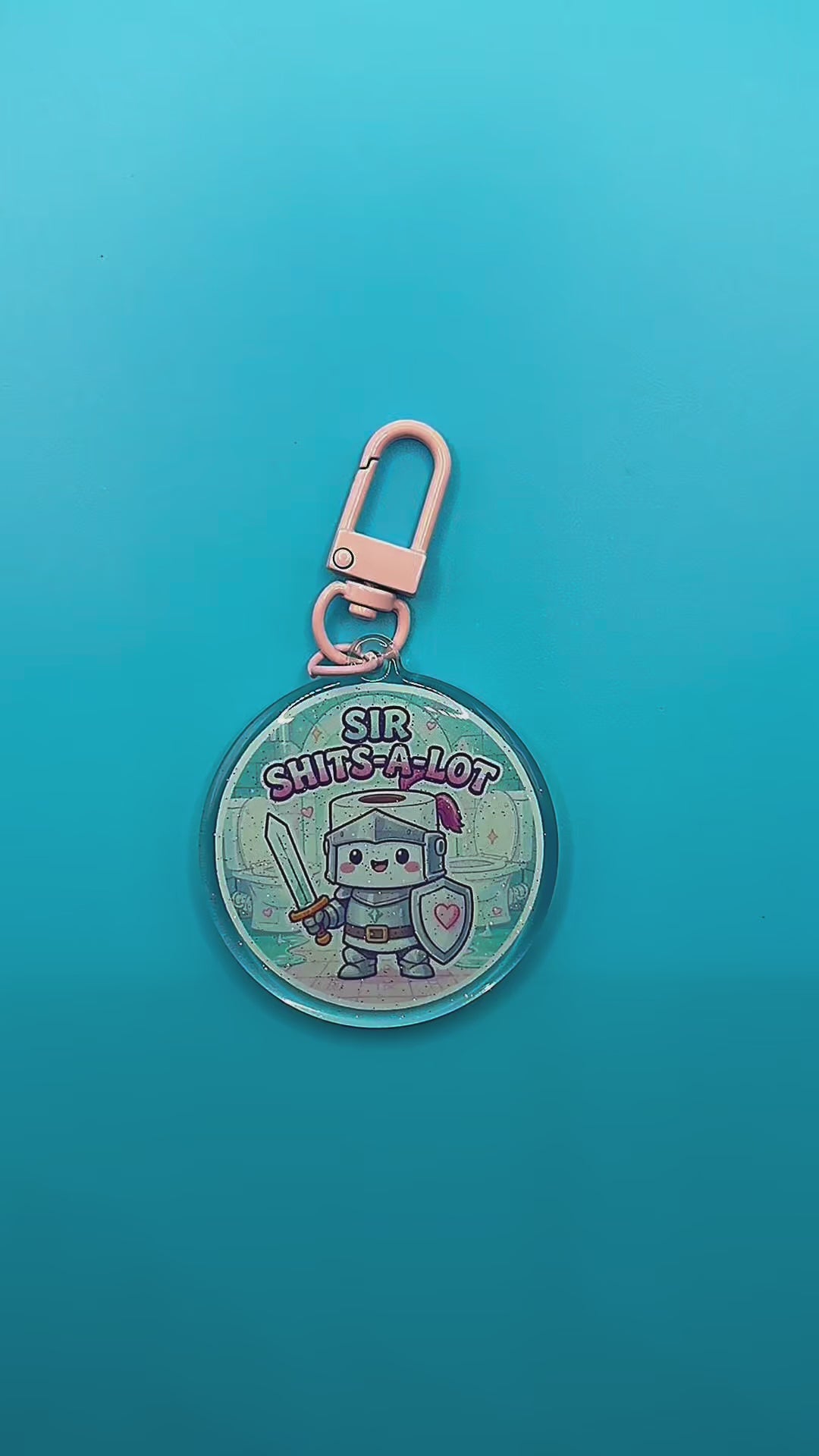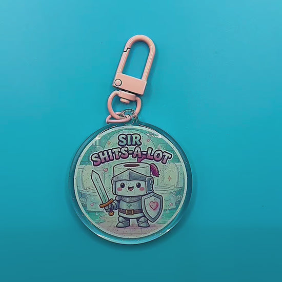 The Sir Shits-A-Lot glitter acrylic keyring is a hilariously cute, toilet-humour accessory featuring an adorable knight armed with a sword, shield, and… digestive chaos. Made from high-quality acrylic with glitter embedded inside the material, it has a smooth, durable finish with subtle sparkle — no flaking, shedding, or rough texture.